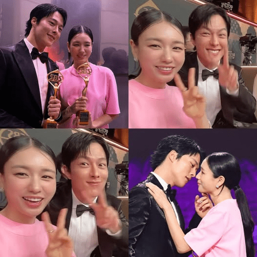 Desde o momento em que seus nomes foram anunciados, ficou claro que aquela vitória tinha um sabor especial. Jang Ki Yong, ao lado de Ahn Eun-jin, subiu ao palco sob aplausos intensos, trocando abraços, sorrisos cúmplices e olhares cheios de significado. Foi como assistir a Go Da-rim e Gong Ji-hyuk ganhando vida mais uma vez, só que agora diante de uma plateia real, celebrando não apenas um prêmio, mas o carinho genuíno dos fãs que votaram incansavelmente.